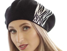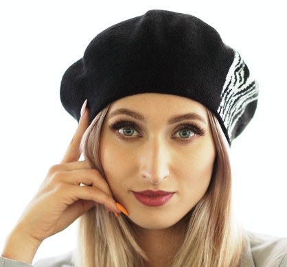 gładki beret, wrobione zdobienie zebra